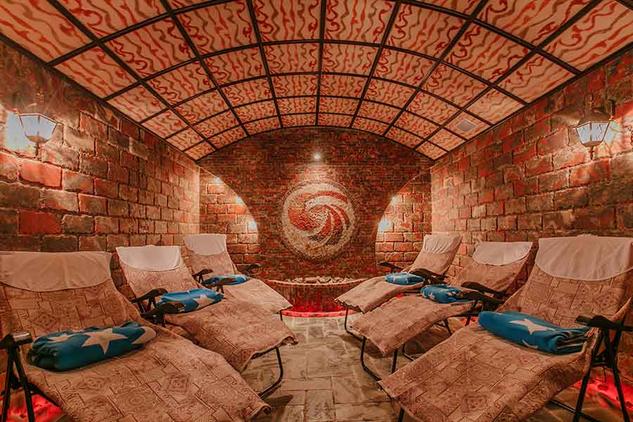 Предлагаются уникальные целебные ванны: ароматичные, пантовые, бишофитные, йодобромные. Ванны снимаю стресс, снижают вес, улучшают сон, кровообращение, тонизирует организм. Также предлагаются физиотерапия, озонотерапия, карбокситерапия, бальнеотерапия и спелеотерапия. На территории санатория разбит парк с прогулочными дорожками и террасами. Вблизи находится огромное количество уникальных памятников природы и истории.