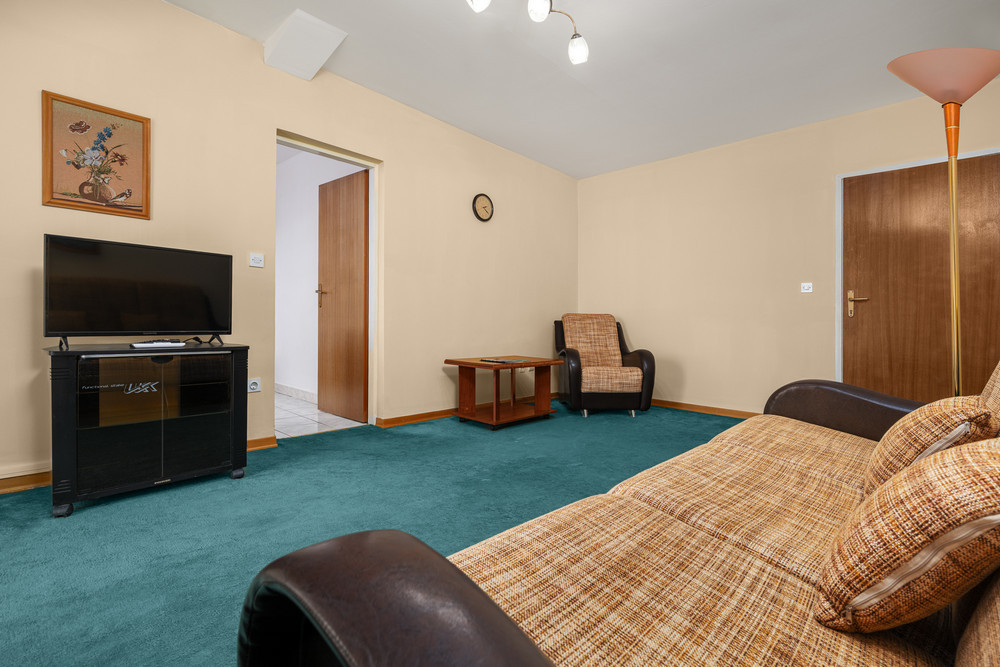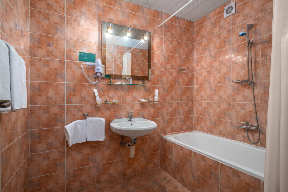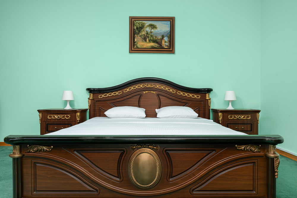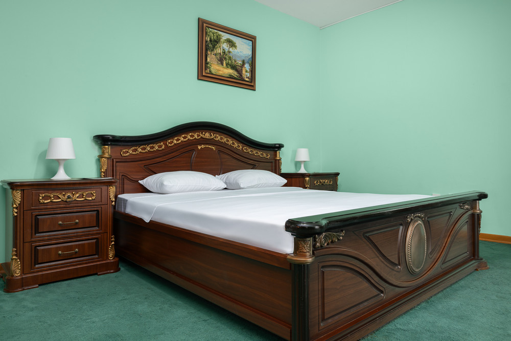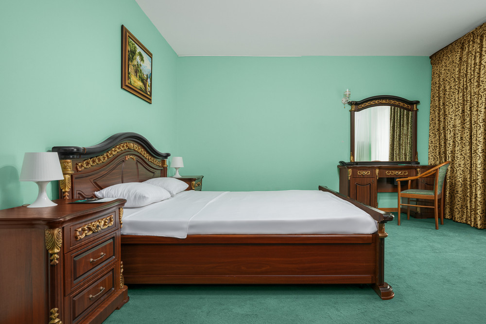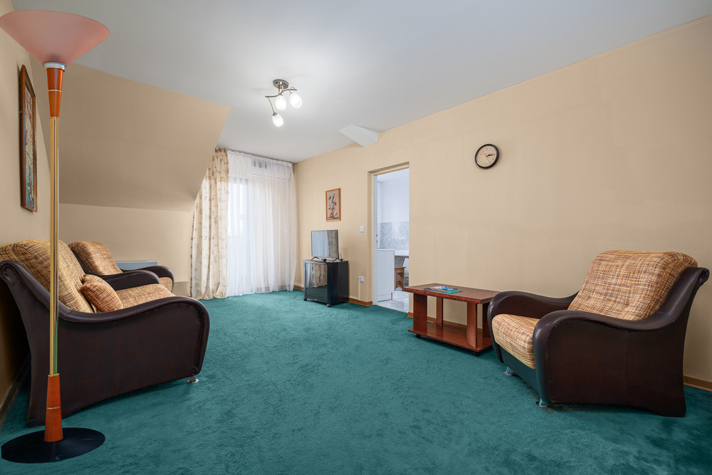 Площадь номера - 65 кв.м. 2 осн. места. 2 доп. места. Балкон. Кухня. Мебель: вешалка, диван раскладной, зеркало, кресло, кровать двуспальная, кухонная мебель, прикроватные тумбочки, стол, столик журнальный, стулья, тумба, шкаф. Оборудование: гладильная доска, кондиционер, микроволновая печь, набор посуды, сейф, телевизор, телефон, утюг, холодильник, чайный набор посуды, электрочайник. Санузел: с ванной/душем, тапочки, туалетные принадлежности, фен, халат. Сервис: Wi-Fi бесплатно, смена полотенец, смена постельного белья, уборка номера, услуги внутренней телефонной связи.